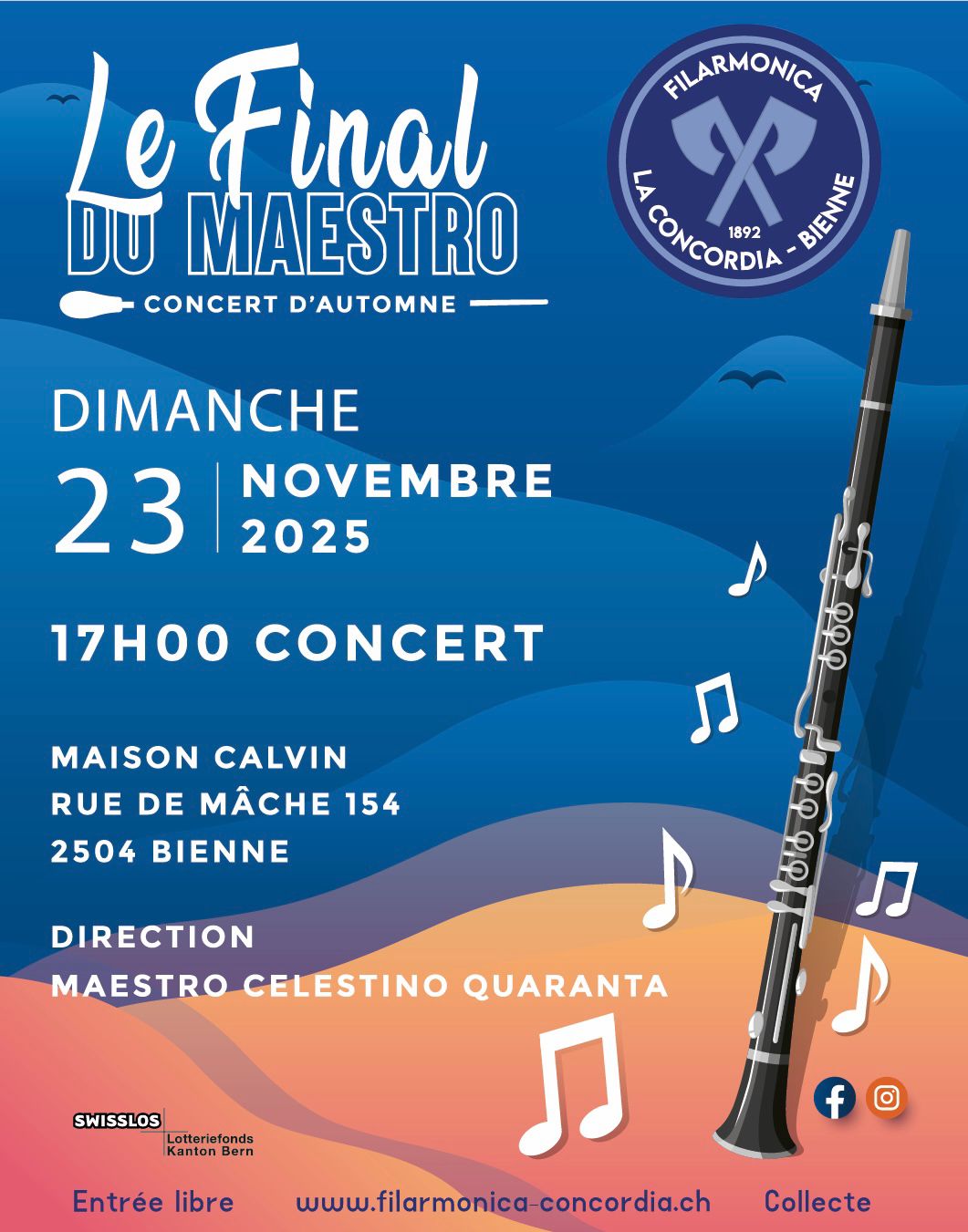 Pourquoi pas à la Filarmonica La Concordia, 2ème plus grande société de musique de la ville de Bienne. Nous sommes une équipe multinationale pleine d’énergie.filarmonica.concordia@gmail.com